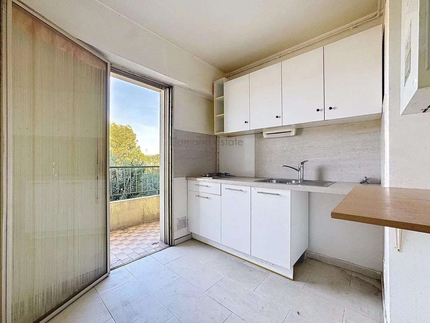 Located in Le Cannet, in the Aubarède neighborhood, on the 1st floor of a condominium, a 2-room apartment with a Carrez Law surface area of 48.27 sqm, comprising: