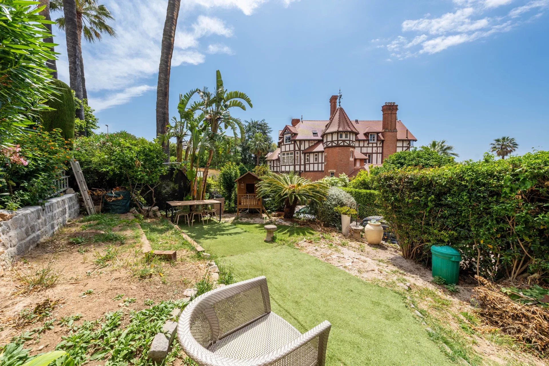 Situé dans le quartier résidentiel de La Californie, cet atypique appartement de 3 pièces se trouve dans un charmant cottage anglais entouré d'un parc paysager classé. Avec une superficie Loi Carrez de 68,21 m², cet appartement bénéficie de deux terrasses orientées plein Sud, offrant une vue panoramique sur la mer et les îles. Il dispose également de la jouissance exclusive d'un jardin privatif d'environ 70 m².