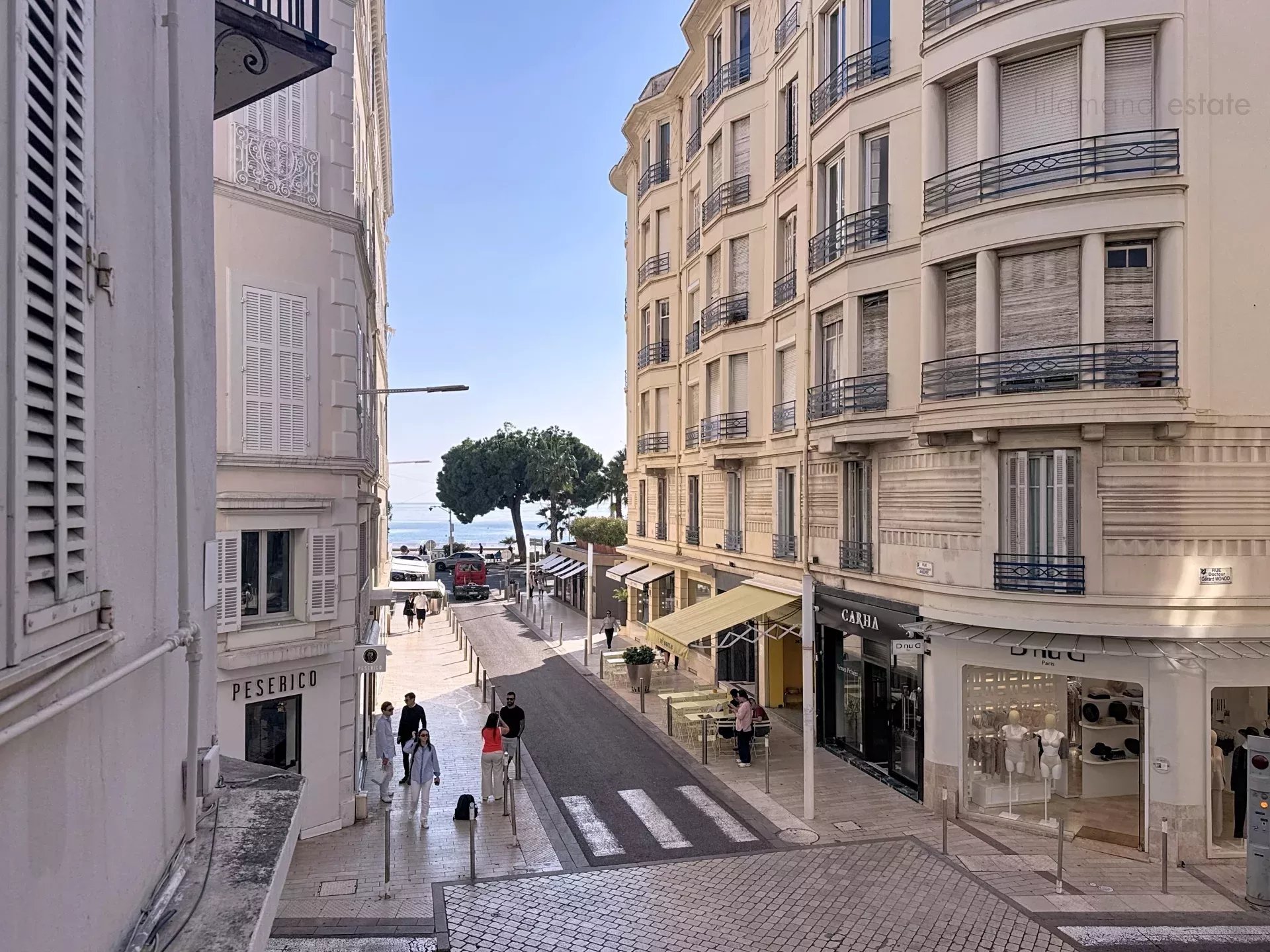 Exclusif – Situé à Cannes-Banane à 50m de la Croisette et 80m de la rue d’Antibes, au 1er étage d’un immeuble ancien avec ascenseur, un appartement de type 2 pièces, d’une surface Loi carrez de 62,84 m2, comprenant : Une entrée, un séjour/ salle à manger, donnant sur un balcon de 8 m2 exposé Ouest avec une vue latérale mer , une cuisine indépendante, une chambre, une salle de bains avec WC, un dressing, ainsi qu’un WC invités. Possibilité de faire un 3 pièces. Très bon rendement locatif. Une cave située au rez-de-chaussée complète ce bien.