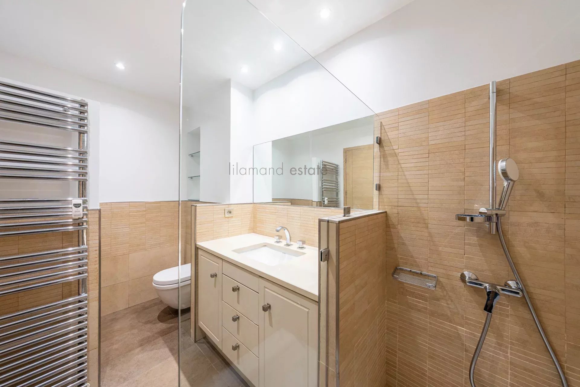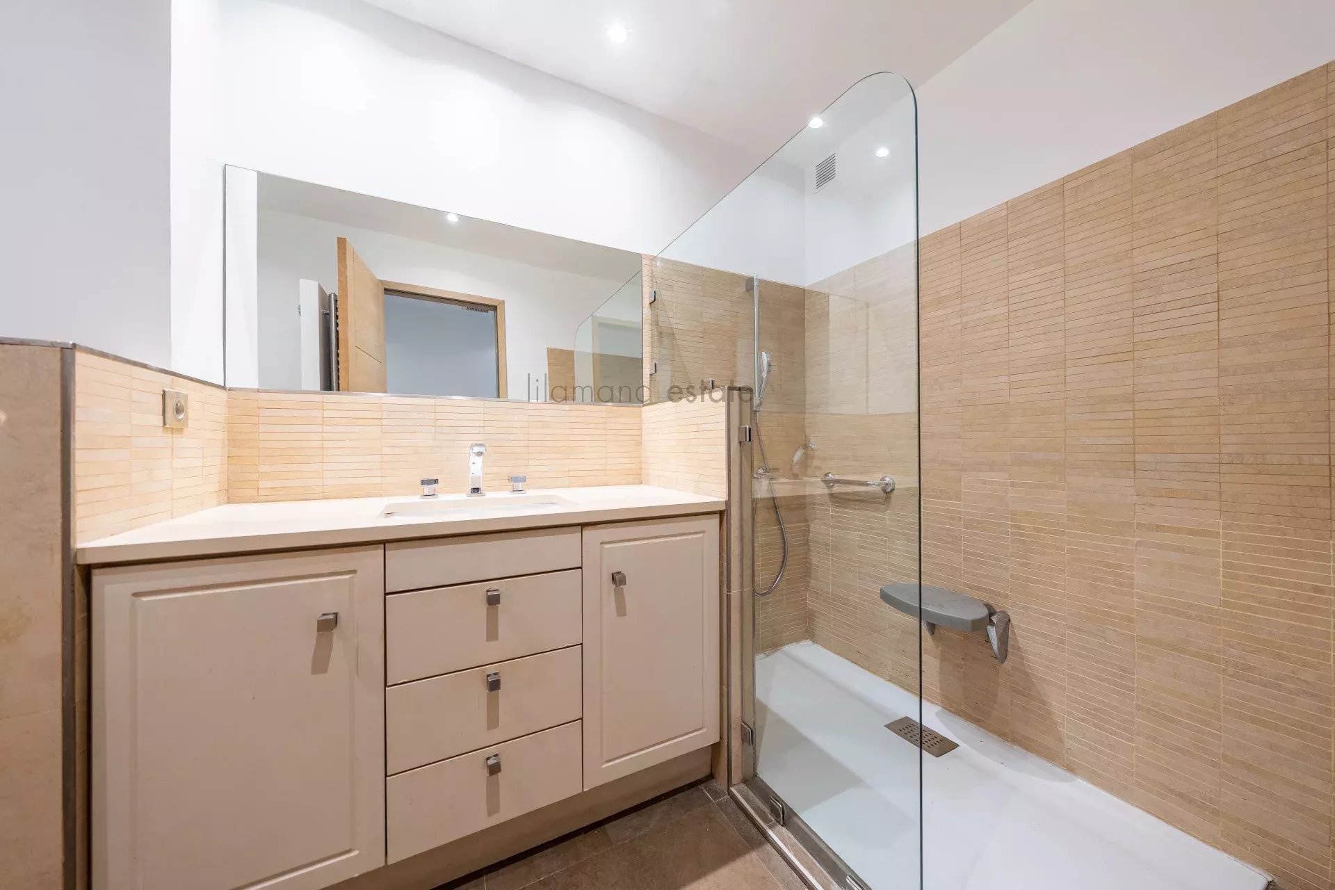 Vaste séjour/cuisine, 2 chambres, salle de douche avec wc/bidet. Cave & parking extérieur privatif.