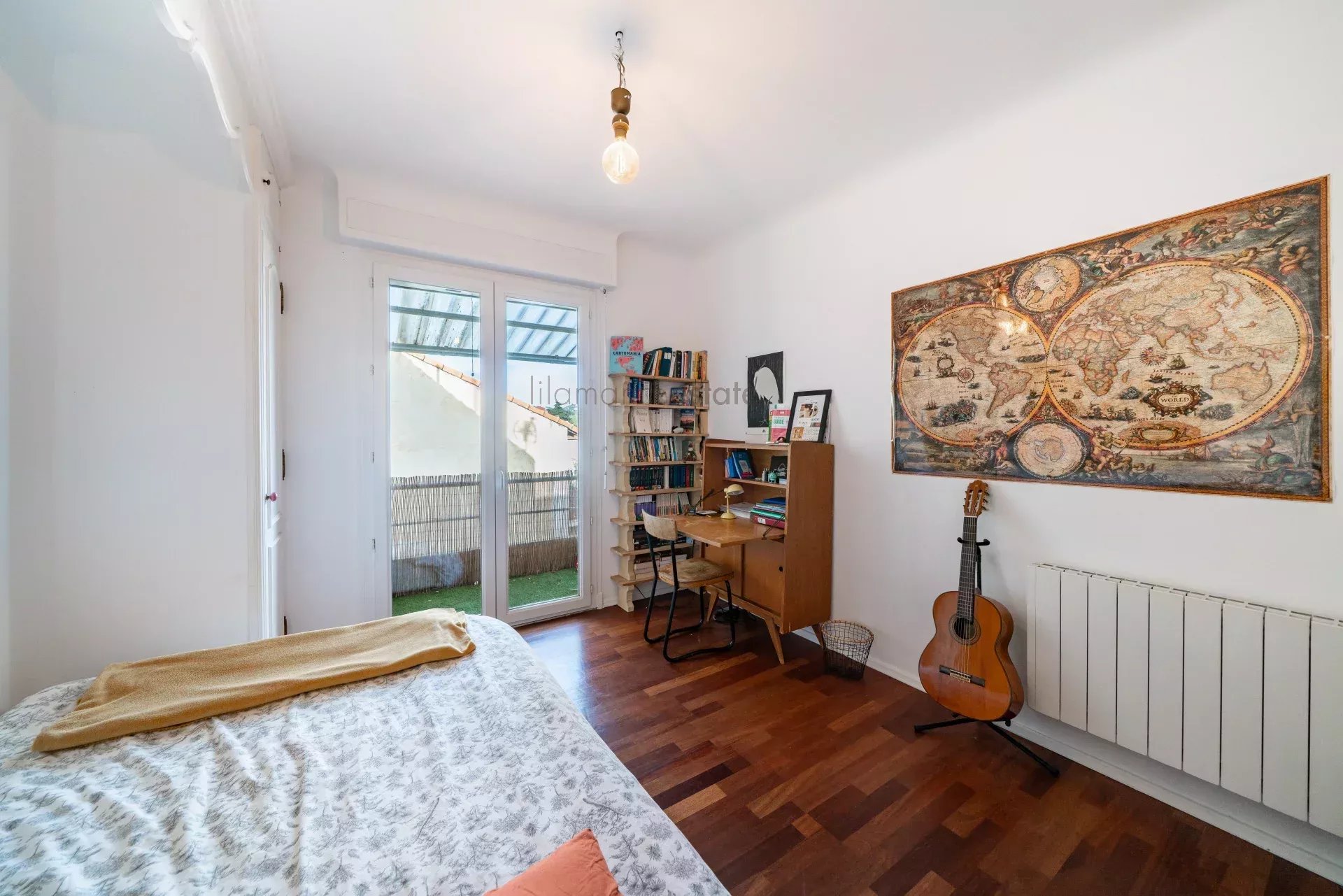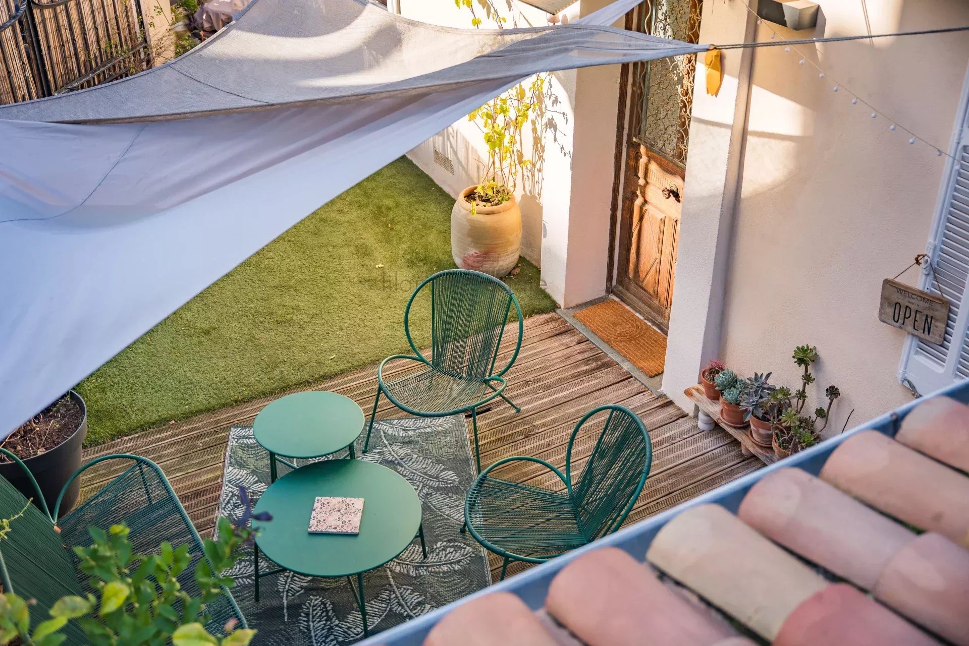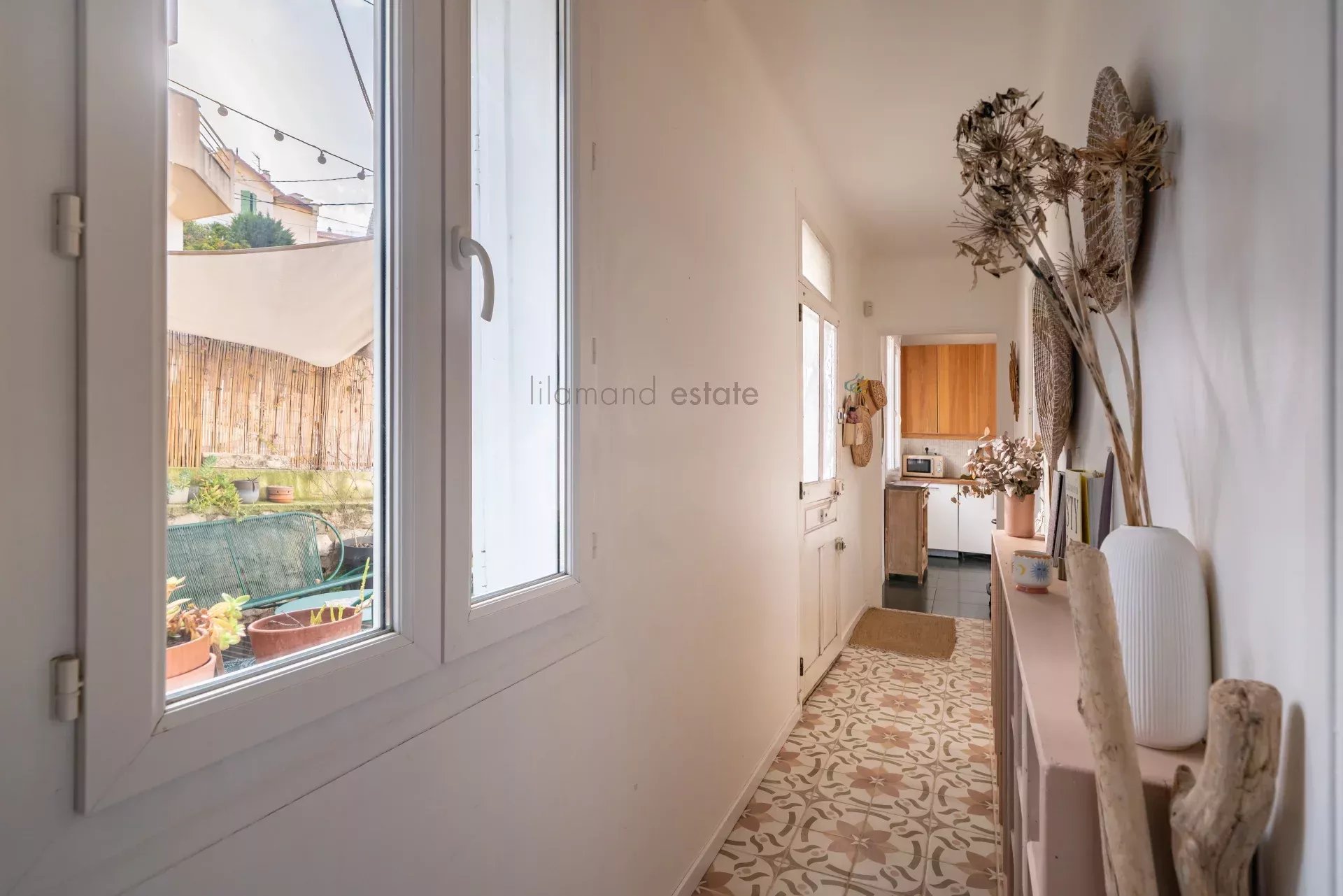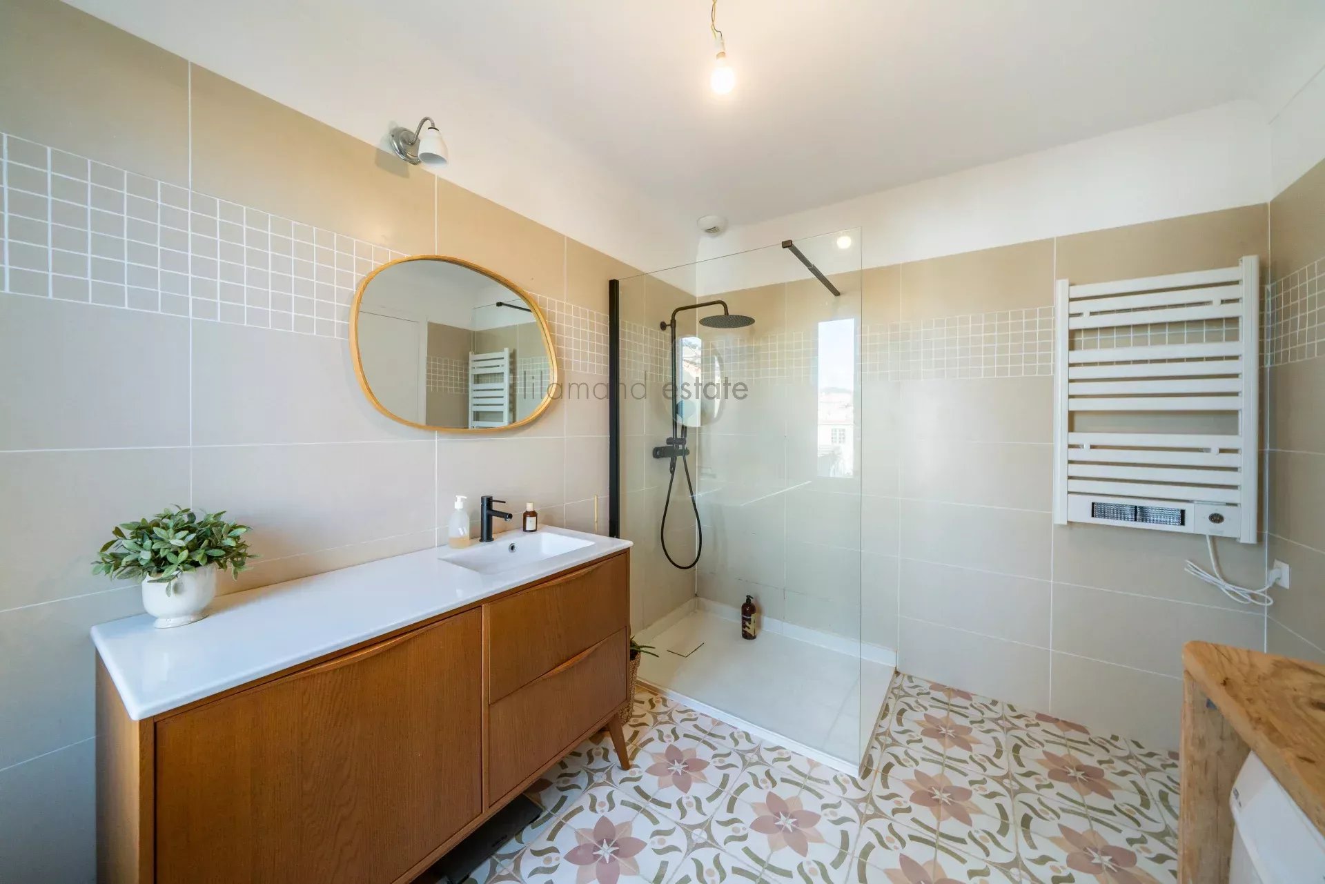 Idéalement situé à Cannes, dans un environnement calme, dans le quartier du Petit Juas, un appartement, entièrement rénové, en dernier étage, comme une maison de ville avec jardin, d'une surface habitable d'environ 83 m2, comprenant :