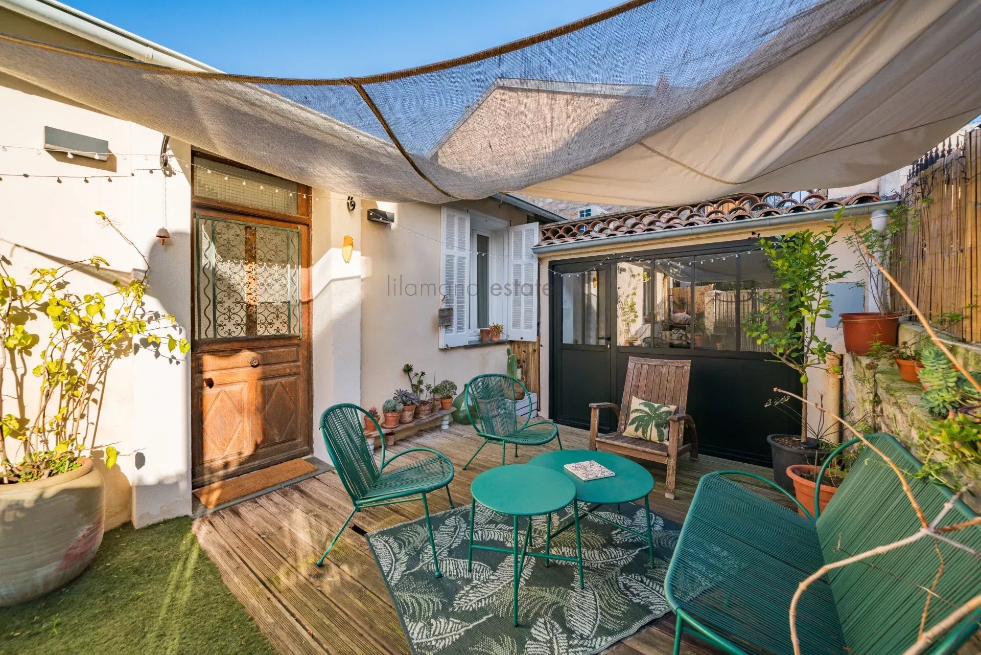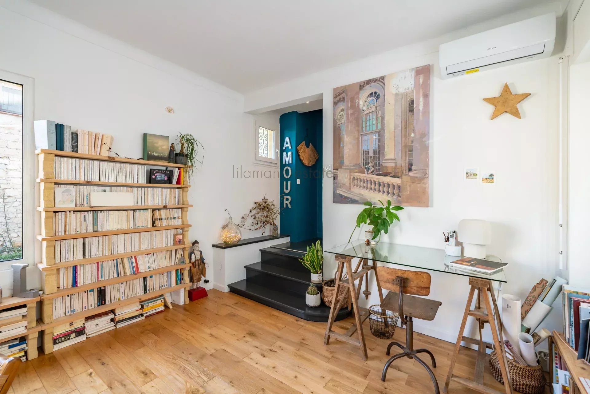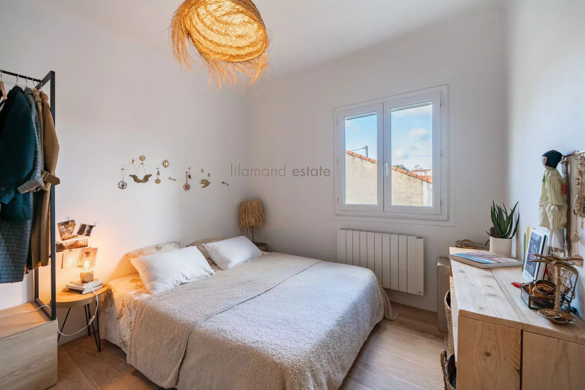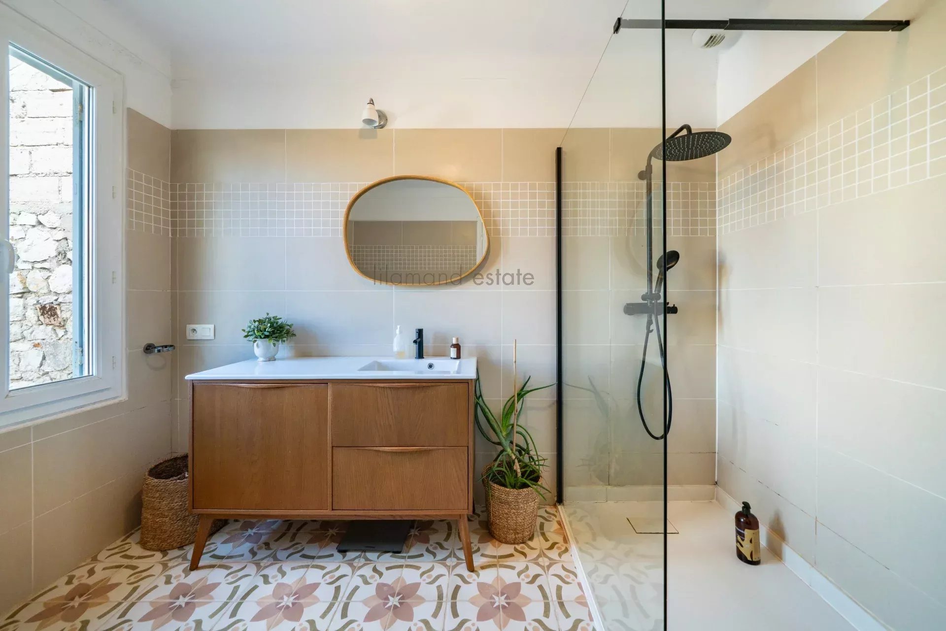 Idéalement situé à Cannes, dans un environnement calme, dans le quartier du Petit Juas, un appartement, entièrement rénové, en dernier étage, comme une maison de ville avec jardin, d'une surface habitable d'environ 83 m2, comprenant :